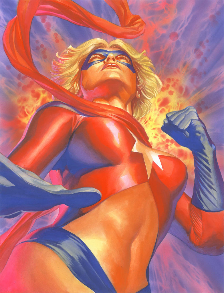 "Ms. Marvel" is an original, one-of-a-kind gouache painting on 3-ply Strathmore illustration board, sized 15 x 19 inches, and represents Ross’s definitive reinterpretation of legendary Marvel characters. These works were painted specifically for the book and have never been offered before. Signed by the artist.